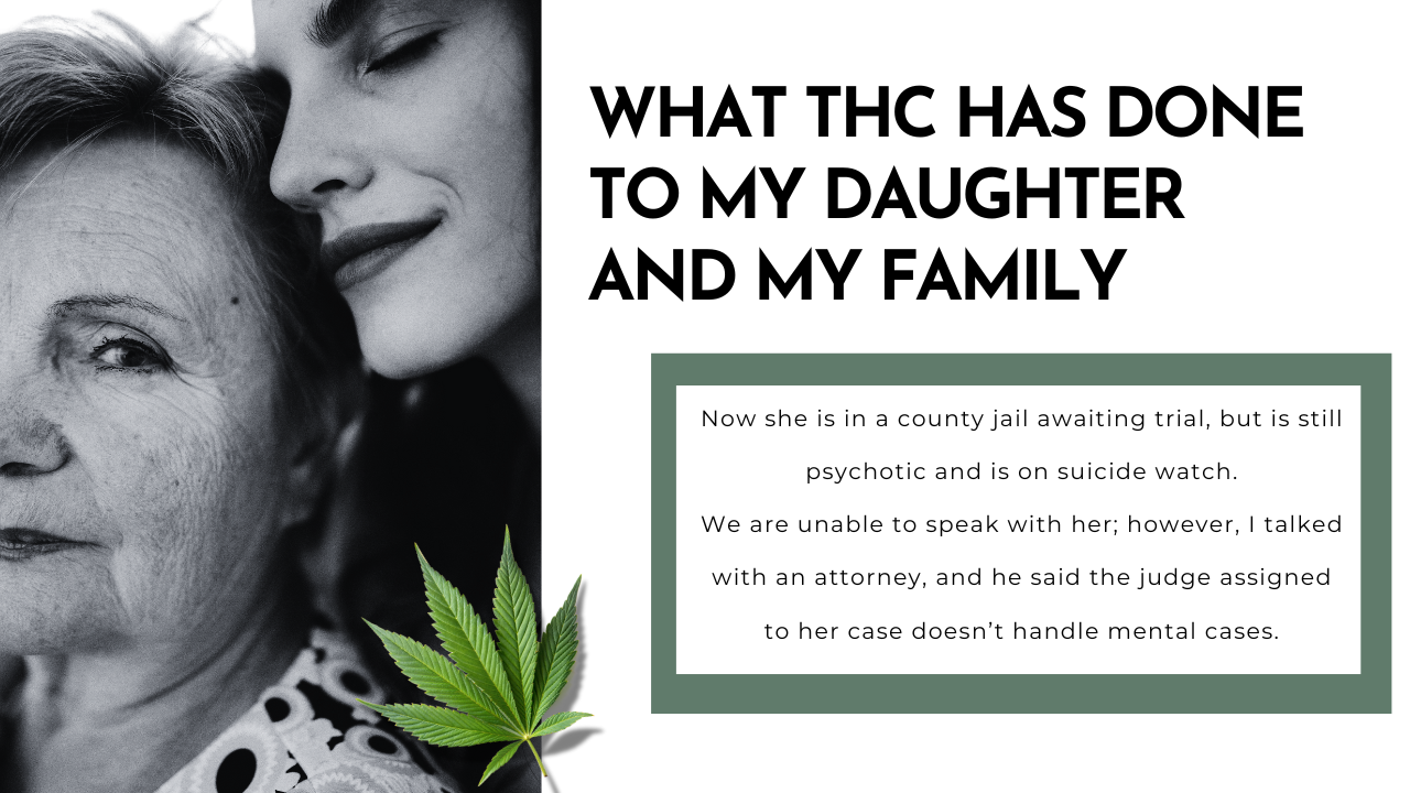I pray and hope someone will help my 38-year-old daughter; her husband has given up on her and wants a divorce. I could go into more detail about everything, but I was trying to summarize what THC has done to my daughter and our family.
