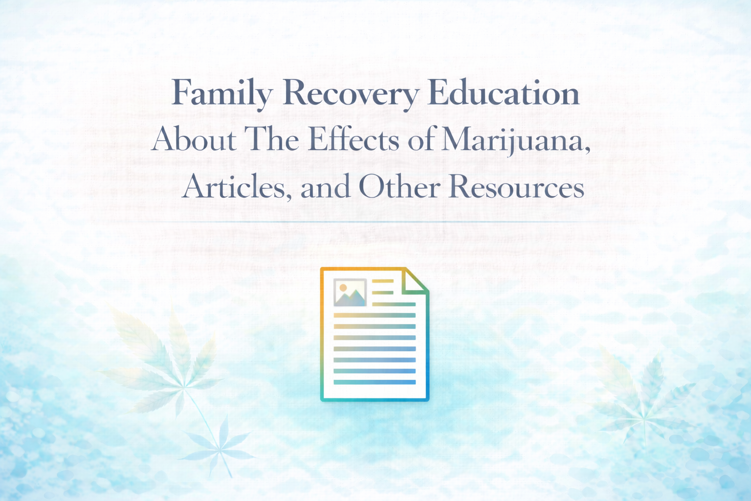 Family Recovery Education About The Effects of Marijuana, Articles, and Other Resources
